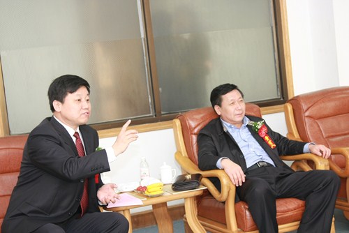 (正大集團資深副董事長于建平和青島市檢驗檢疫局局長李鳳貴、 即墨市委書記劉贊松、即墨市市長鄭德雁在一起親切交談)
