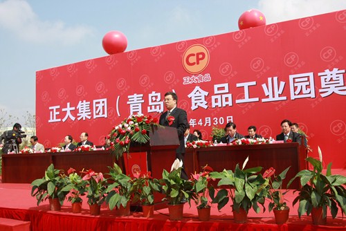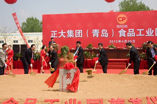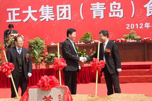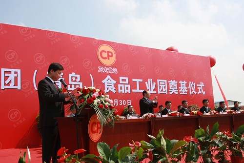 奠基儀式由正大集團資深總裁李瑞寒先生主持。儀式第一項由正大集團資深副董事長于建平先生介紹項目情況,他說:“正大集團(青島)食品工業(yè)園項目,計劃總投資12億元人民幣,規(guī)劃新建3個食品加工廠,擴建1個加工廠及相應配套的生產(chǎn)、生活設(shè)施,總建筑面積2.2萬平方米,生產(chǎn)油炸、香腸、面食、米飯等新產(chǎn)品。2013年建成后,可形成各類新產(chǎn)品年產(chǎn)能4.3萬噸、年銷售收入30億元人民幣。正大集團(青島)食品工業(yè)園的興建,將是在這片神奇的土地上,崛起的一座更適應生產(chǎn)、生活的現(xiàn)代化的新食品工業(yè)園區(qū),一個可持續(xù)發(fā)展的、新的經(jīng)濟增長點。”儀式第二項由即墨市鄭德雁市長致辭。儀式第三項由青島市、即墨市、正大集團的各位領(lǐng)導為正大集團(青島)食品工業(yè)園揮鍬奠基。