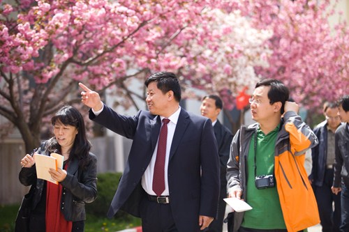 (資深總裁李瑞寒陪中央媒體采訪團欣賞工廠美景)