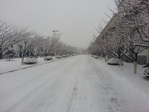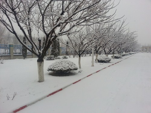 島城歲末迎來首場大雪,青島正大園區(qū)銀裝素裹。