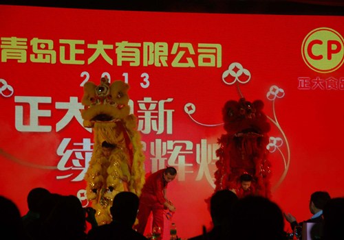 歡樂的鑼鼓響起來,歡快的獅子舞起來;于建平資深副董事長在百忙之中,專程趕來參加青島正大的聯(lián)歡晚會(huì),親自為我們的獅子添上點(diǎn)睛之筆,點(diǎn)睛點(diǎn)金,祝愿青島正大2013年財(cái)源滾滾。于董說參加這樣的聚會(huì)他很高興,心情最好,這個(gè)聯(lián)歡晚會(huì)也是慶功會(huì);2012年是肉雞加工行業(yè)多年未遇的低谷,但青島正大在李總裁的帶領(lǐng)下仍然取得了驕人的經(jīng)營業(yè)績,成為正大集團(tuán)的標(biāo)桿,成為行業(yè)的領(lǐng)跑者,青島正大模式也成為行業(yè)中競相學(xué)習(xí)的模式。在此向大家表示祝賀。大家的成績有目共睹,辦個(gè)晚會(huì)也很讓人震撼。