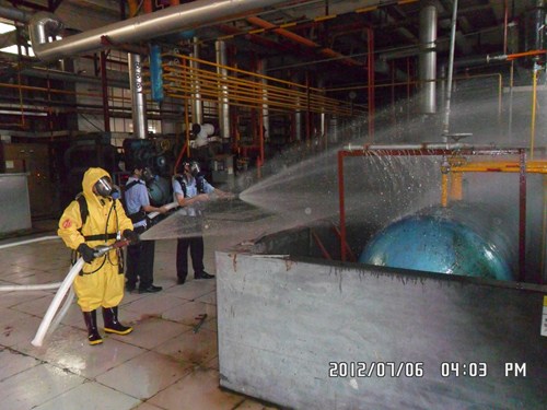 2012年7月6日,公司設(shè)備部、安全部聯(lián)合組織了液氨泄漏應(yīng)急演習(xí)。